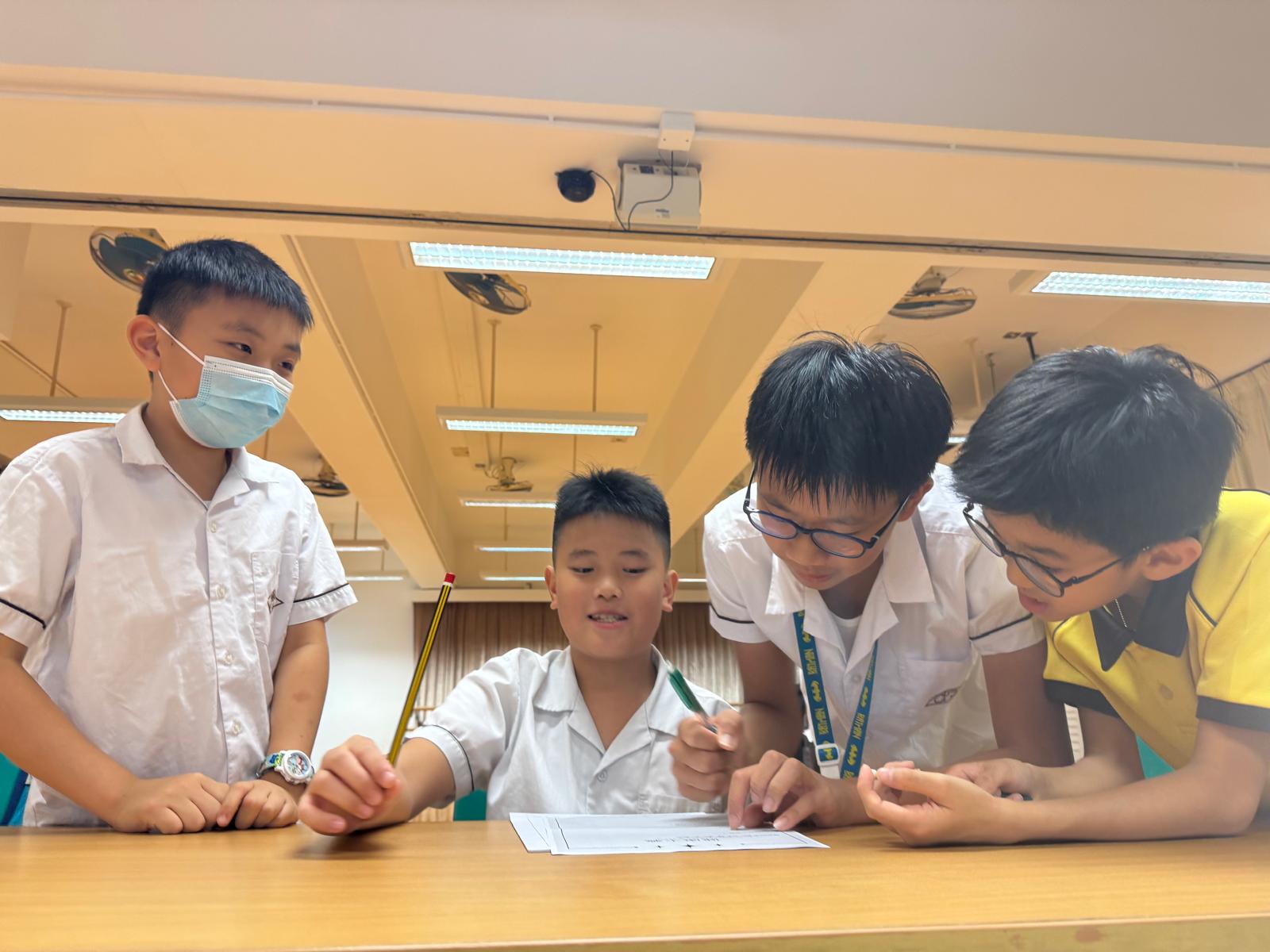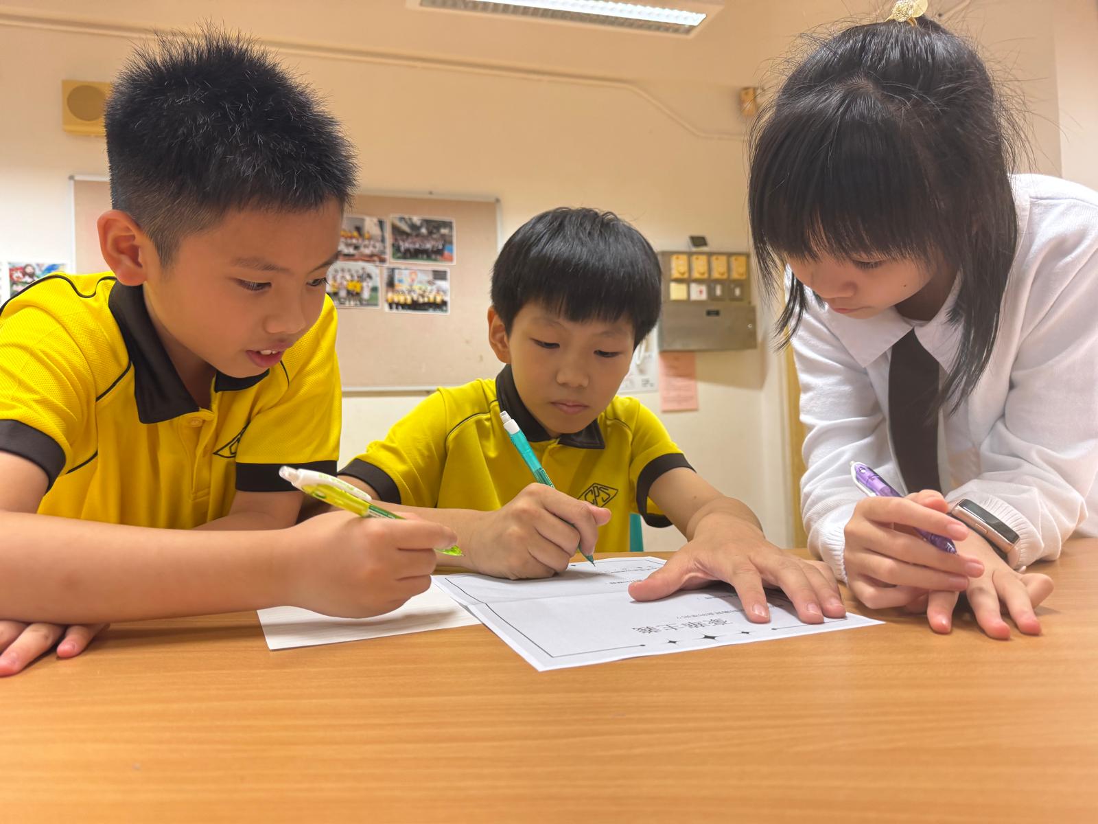 由四和五年級同學組成的小老師團隊教授一年級同學有關中文的語文知識